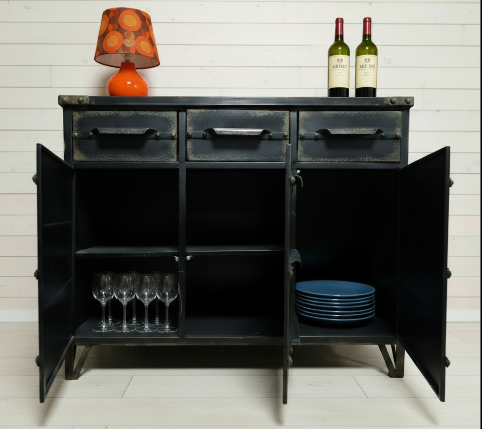 Large black metal Industrial storage cabinet