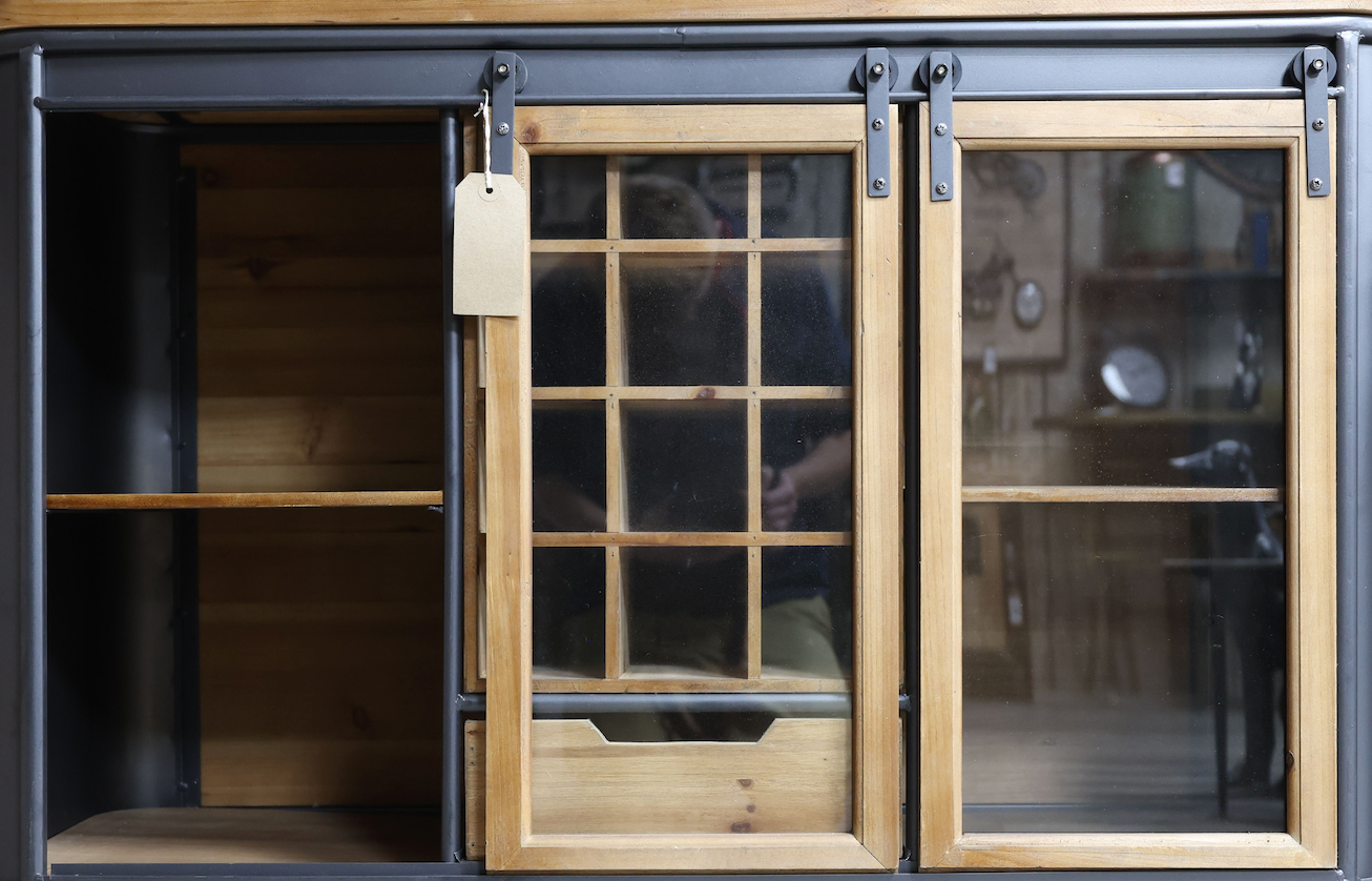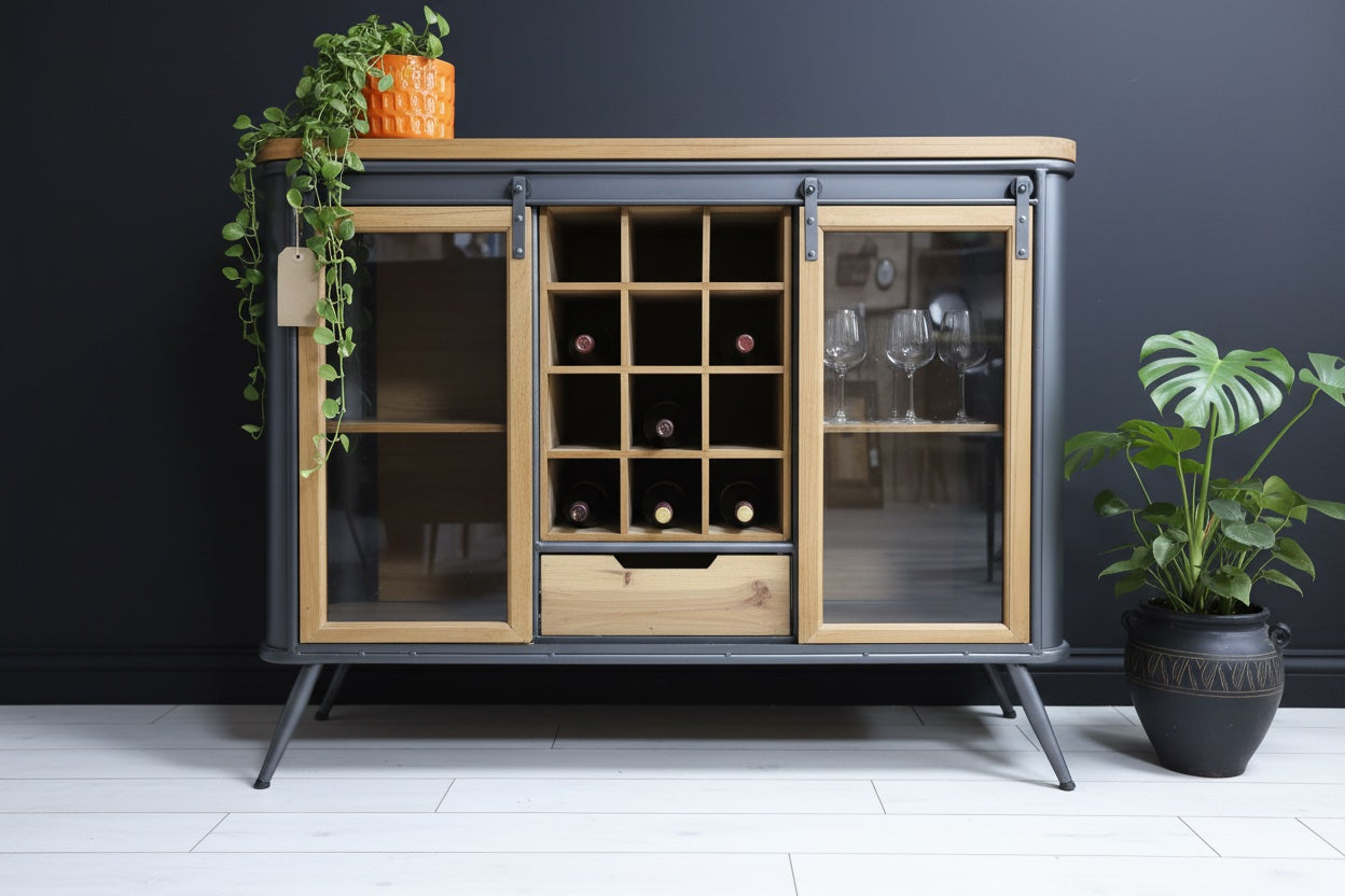 Glass fronted drinks cabinet | Metal & wood