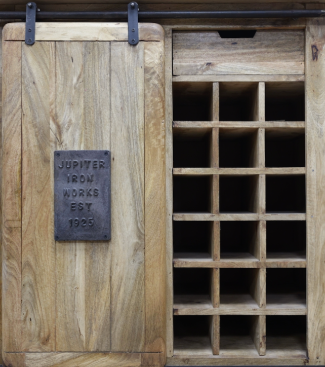 Industrial Iron & Wood Wine Cabinet - 18 Bottle Storage with Cupboard