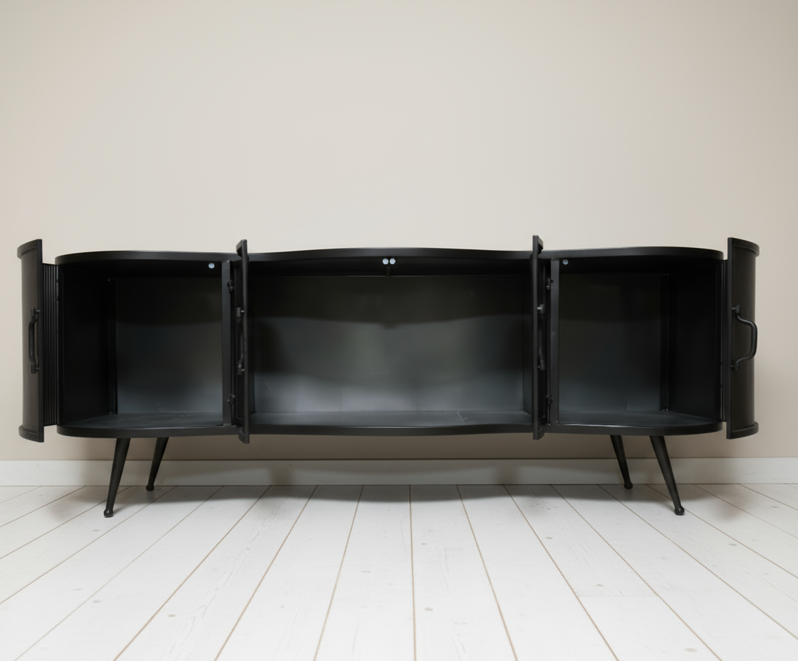 Large Curvy Ribbed Metal Storage Cabinet - Industrial Sideboard 150cm