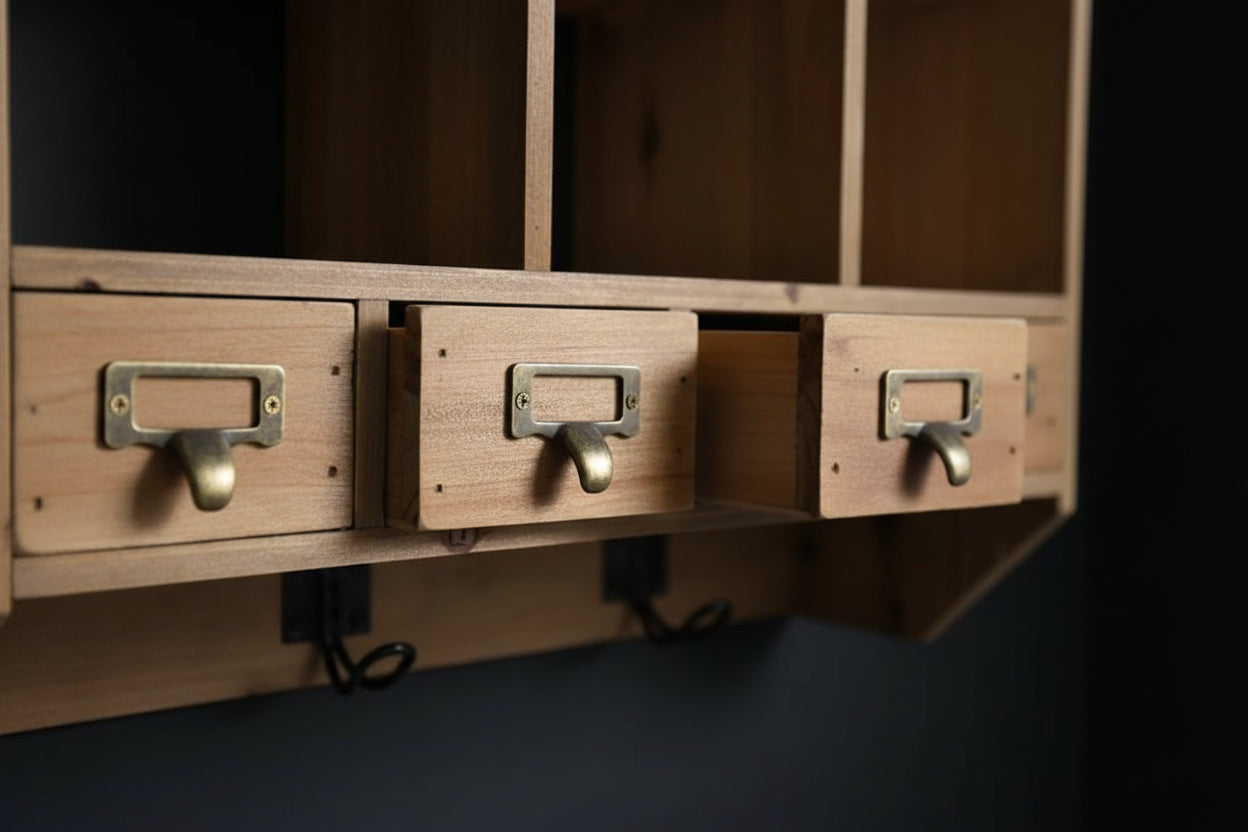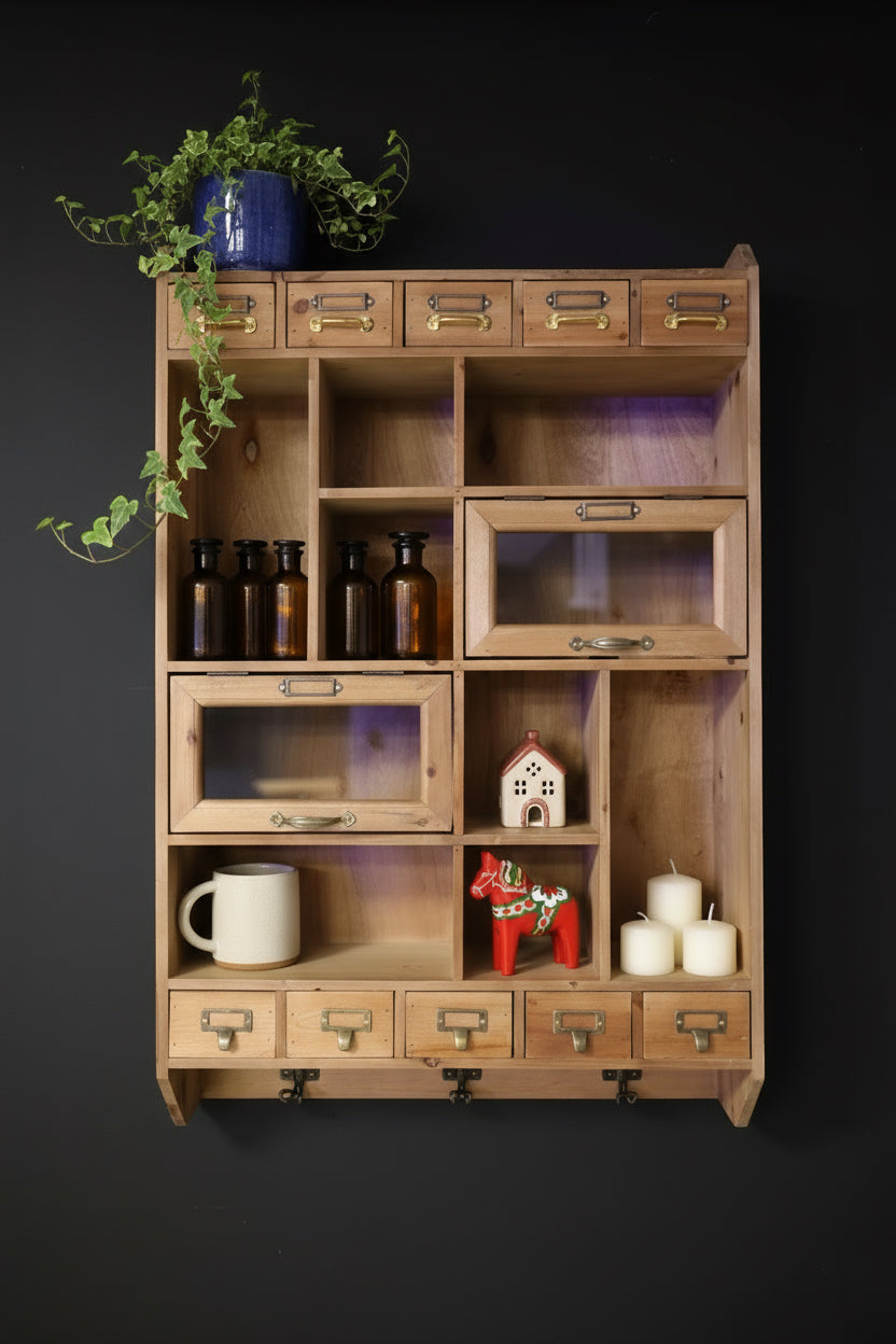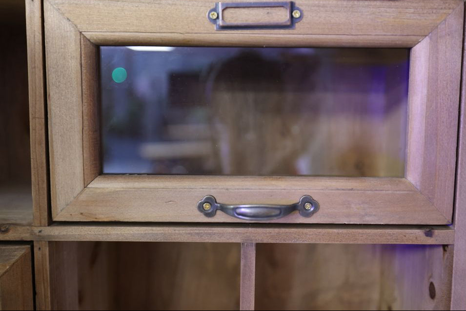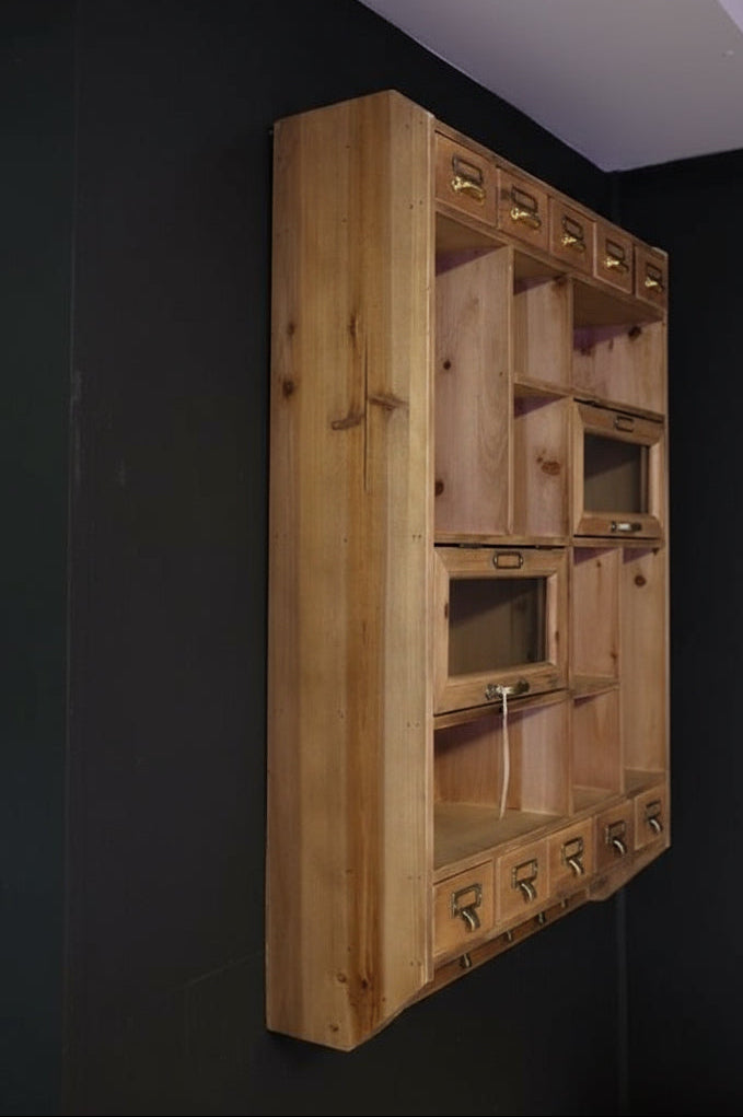 Rustic wood glass display wall cabinet
