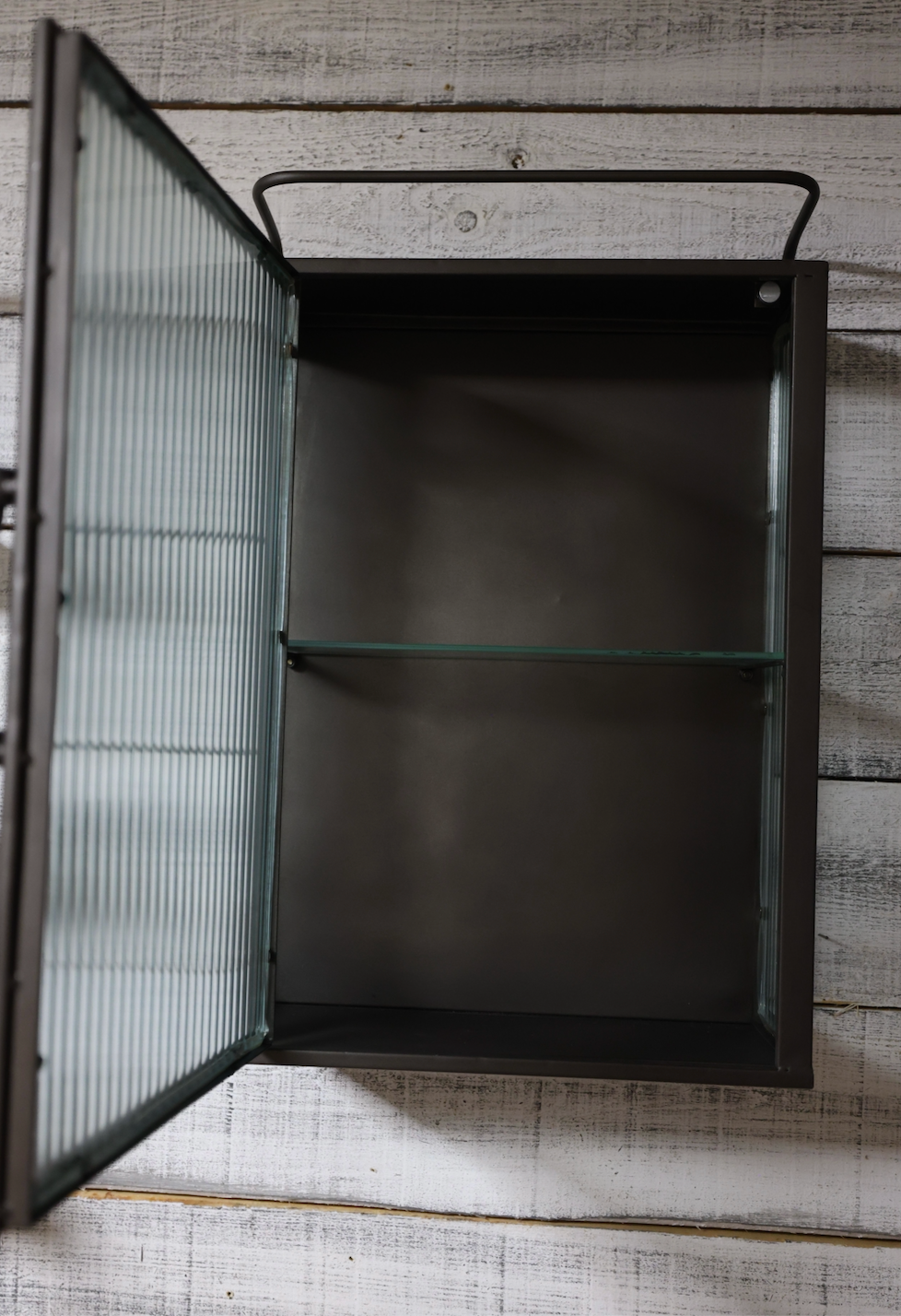 Bathroom wall cabinet ribbed glass & metal