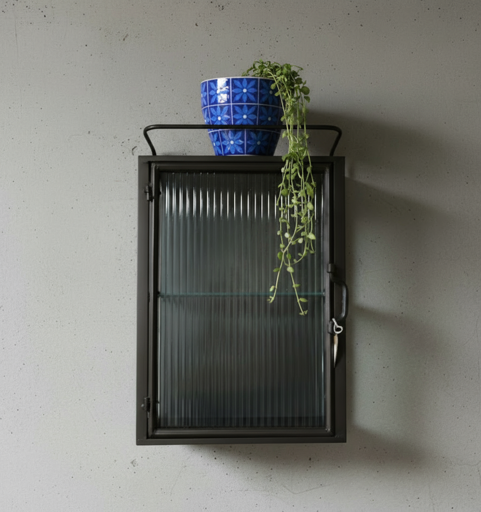 Bathroom Wall Cabinet Ribbed Glass & Metal H54cm