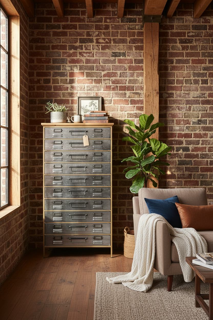 Tall Slim Chest of 10 Metal Storage Drawers