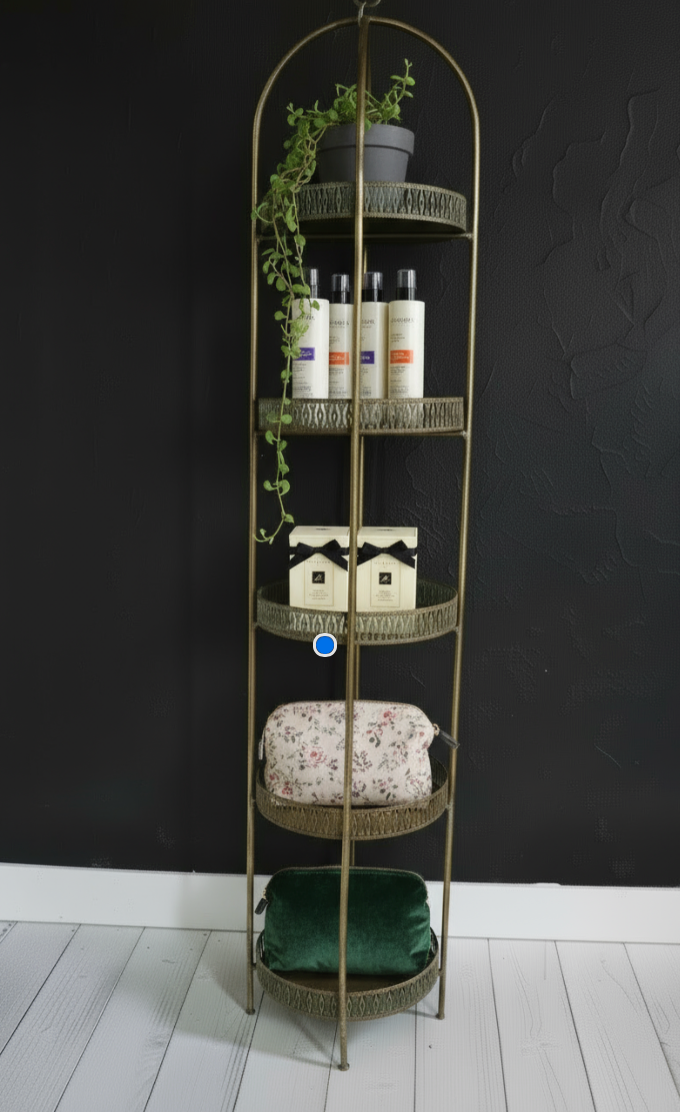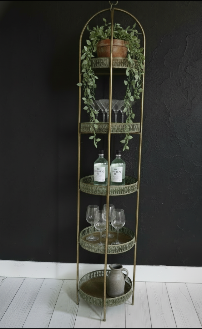 Tall slim 5 tier gold metal round tray shelving