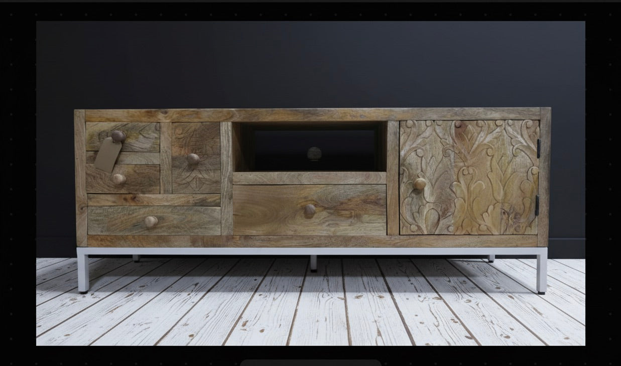 White metal & rustic wood TV storage cabinet